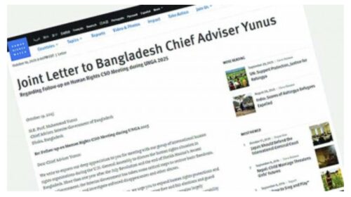 আসাদুজ্জামান :: মানবাধিকার লঙ্ঘনের ঘটনা রোধে একগুচ্ছ ব্যবস্থা নেওয়ার আহ্বান জানিয়ে প্রধান উপদেষ্টা অধ্যাপক মুহাম্মদ ইউনূসকে চিঠি লিখেছে ছয়টি আন্তর্জাতিক মানবাধিকার সংস্থা। চিঠিতে গুম-খুনের বিচার নিশ্চিত করার পাশাপাশি আওয়ামী লীগের কার্যক্রমের ওপর থেকে নিষেধাজ্ঞা প্রত্যাহারের…